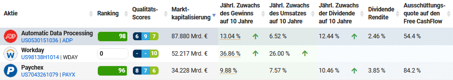 Kennzahlen von ADP im Vergleich zu Workday und Paychex