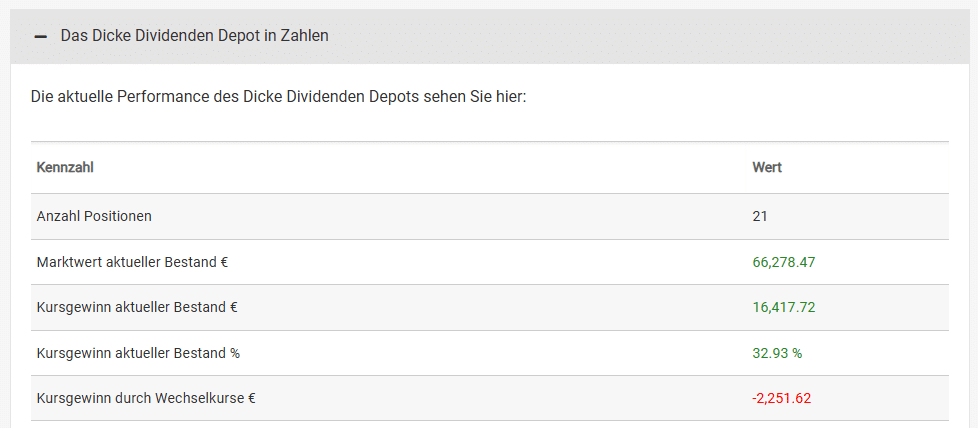 Als Abonnent unseres Börsenbriefs kannst du das Depot-Update über das Dicke Dividenden Depot einschließlich Verkauf und Kauf weiterlesen. Sichere dir hier den Börsenbrief und erhalte vollen Zugriff auf inspirierende Echtgeld-Depots, lukrative Artikelserien und Analysen.