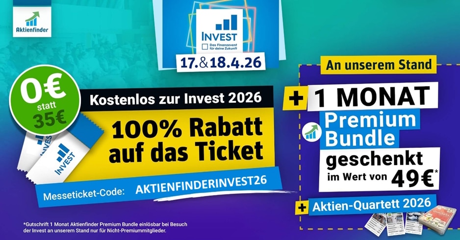 • Den Messe-Ticket-Code AKTIENFINDERINVEST26 direkt als Code auf dieser Seite einlösen (nicht im Warenkorb einlösbar)