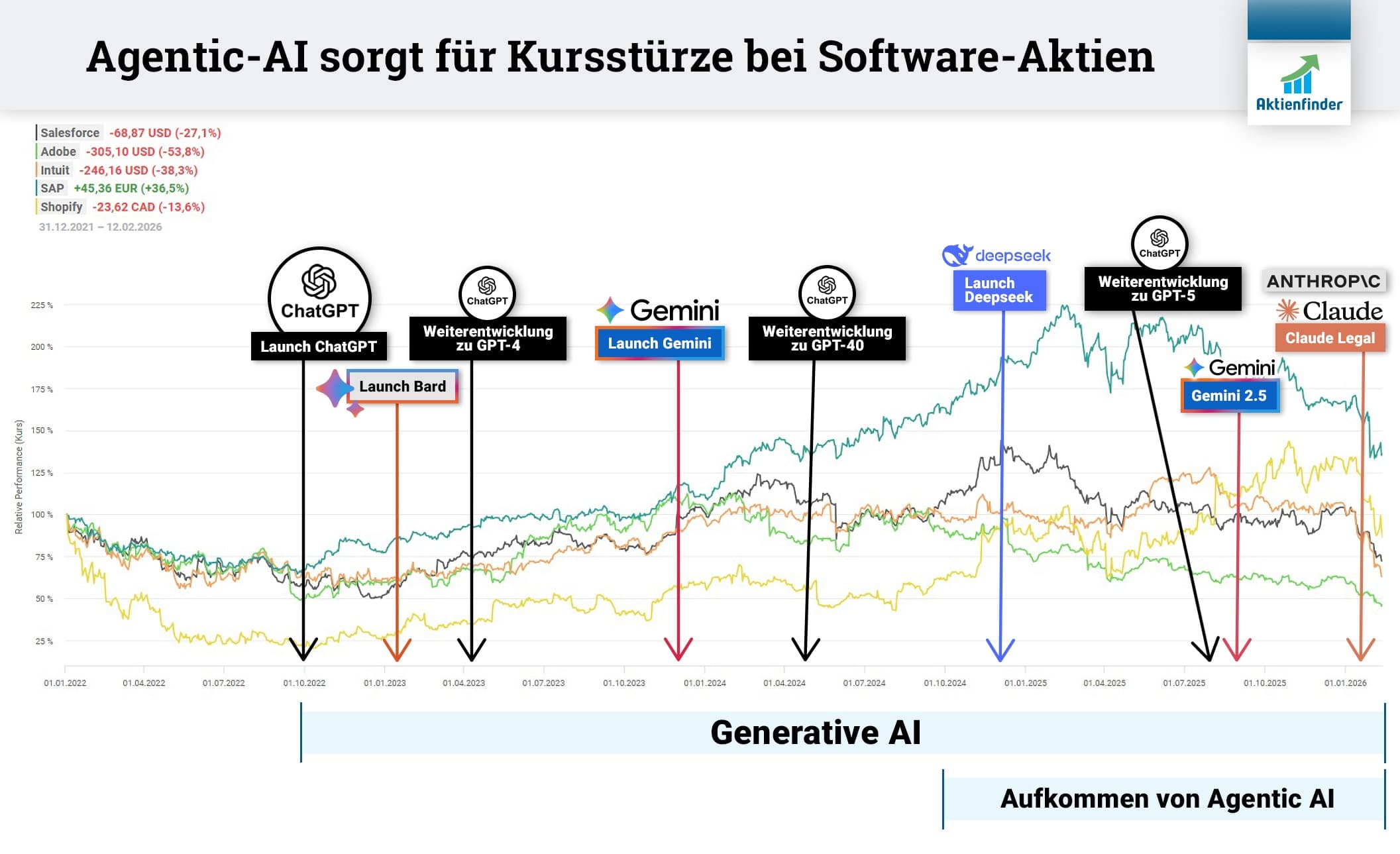 Um die aktuelle Lage zu verstehen, werfen wir zunächst einen Blick auf die neuesten Entwicklungen im Bereich der KI sowie den Auslöser für den jüngsten Abverkauf von Software-Aktien.