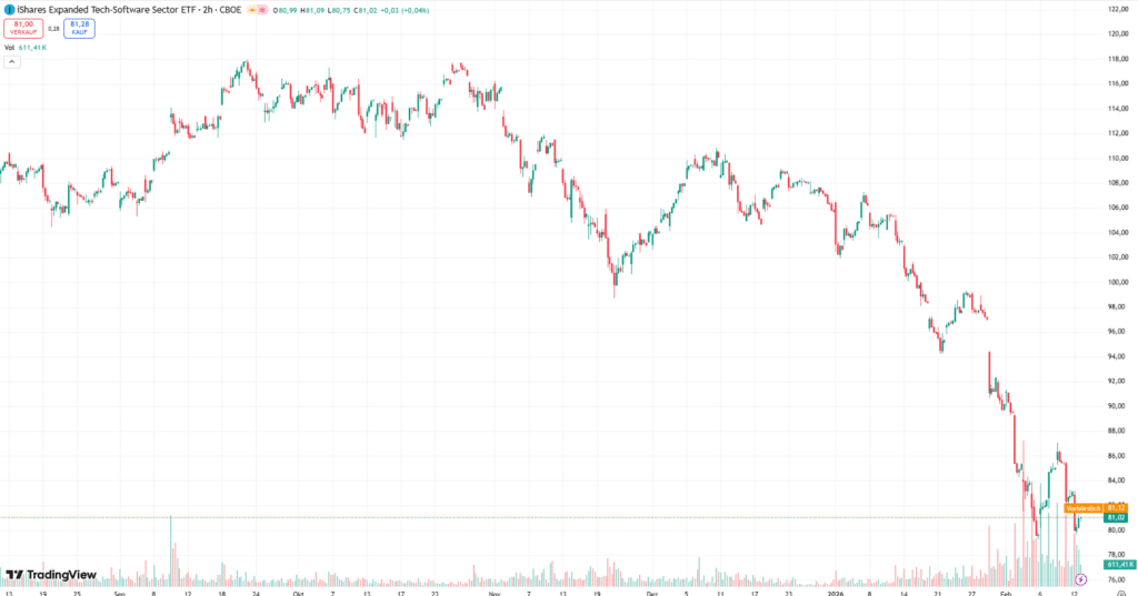 Der Kurs des in den USA handelbaren iShares Expanded Tech-Software Sector ETFs zeigt, wie stark die Softwarebranche unter Druck steht. Insbesondere Ende Januar ging es noch einmal steil bergab. In nur 8 Handelstagen verlor der aus 119 SAAS-Aktien wie Microsoft, Salesforce oder Adobe bestehende ETF knapp 20 Prozent! Als Auslöser für den jüngsten Kursrutsch wurde das neue Enterprise-Werkzeug von Anthropic in Form eines Plugins namens „Claude Legal“ ausgemacht. Dabei handelt es sich um eine spezialisierte KI-Erweiterung für juristische Fachaufgaben. Das Tool ermöglicht unter anderem eine automatisierte Prüfung von Verträgen, eine sekundenschnelle Zusammenfassung von Gerichtsurteilen oder kompletten Gesetzbüchern sowie die automatisierte Erstellung von Rechtsdokumenten.