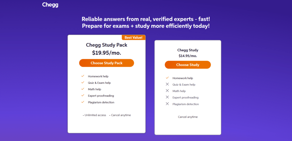 Chegg ist eine softwarebasierte Lernplattform und bewirbt sein Angebot mit dem Slogan „Get 24/7 Homework Help“. Die Plattform stellt heute laut eigenen Angaben 60 Millionen Lösungen von Aufgaben bereit und bietet darüber hinaus persönliche Unterstützung durch Fachexperten, Mathe-Hilfen sowie weitere digitale Lernressourcen an. Dabei setzt Chegg neben einer Wissensdatenbank u.a. auf bezahlte Honorarkräfte, die noch nicht vorhandene Lösungen und Erläuterungen zu unterschiedlichen Fachgebieten erstellen. Um die Lernplattform in vollem Umfang nutzen zu können, ist ein kostenpflichtiges Abonnement nötig.